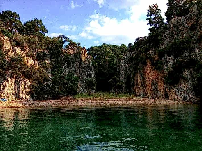 Küçük ve dar olan bu koya iki yüksek tepenin arasından girilir. Koy sık zeytin ve çam ağaçlarıyla kaplıdır, asırlık zeytin ağaçlarına sık sık rastlayabilirsiniz. Koyun uç tarafında bazı kaya mezarları ve tarihi kalıntılar görebilirsiniz. Koyu tepeden seyretmek için zirveye kadar yürüyüşler düzenleyebilirsiniz. Tepeden mükemmel bir manzaraya sahiptir.